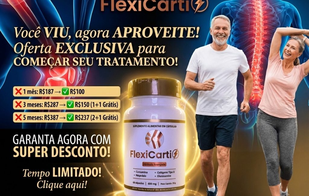 FlexiCarti é um suplemento alimentar 100% natural, formulado com vitaminas, minerais e ativos botânicos. Ele foi desenvolvido para apoiar o bem-estar articular, muscular e geral do corpo, promovendo mais conforto e leveza no dia a dia.
